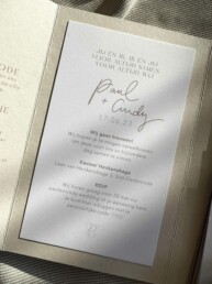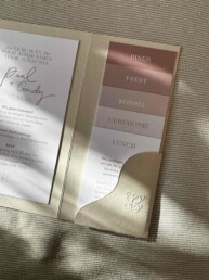 “Imli en Nikki hebben voor ons een volledige trouwlijn gemaakt. We hadden al een eigen logo, deze hebben ze aangepast aan onze ideeën en in onze hele trouwlijn teruglaten komen. Het contact verliep heel fijn, telefonisch, per mail en persoonlijk. Zij hebben onze trouwkaart ontworpen, maar ook de menukaart, de kaart met de tafelsetting en stickers met ons logo welke we weer terug lieten komen op onder andere de bedankje. We zijn ontzettend blij met wat zij voor ons hebben gemaakt en hoe zij samen met ons het volledige ontwerp hebben gemaakt tot het precies was wat we wilden. Echt twee toppers!”
